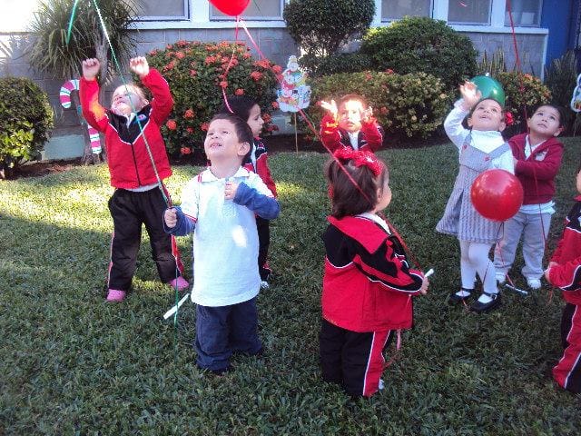 Los pequeños de preescolar y maternal del Plantel Chapultepec salieron al jardín para soltar un globo de gas que contenía la cartita que hicieron a Santa, en la que le piden juguetes para esta navidad, disfrutaron felices y emocionados viendo perderse los globos en la inmensidad del cielo.